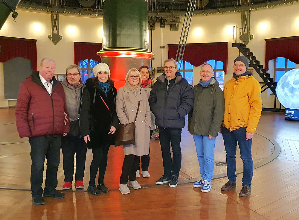Das nächste Highlight war der wissenschaftshistorisch bedeutende Große Refraktor mit einem Linsenteleskop aus dem Jahr 1899 (das viertgrößte der Welt). Das wunderschöne, historische Gebäude wird von einem Förderverein betreut und ist heute wieder in tadellosem Zustand. Die Beobachtungsabende, die regelmäßig kostenlos durchgeführt werden, sind meist innerhalb von Minuten ausgebucht. Glücklicherweise wurden für die Alumni Plätze reseviert. Wir waren dabei, als die große Luke der Sternwarte sich öffnete und das Teleskop ausgerichtet wurde. Die Sicht war sehr gut und so konnten wir an diesem Abend den Jupiter mit seinen Streifen und dem großen roten Fleck beobachten.