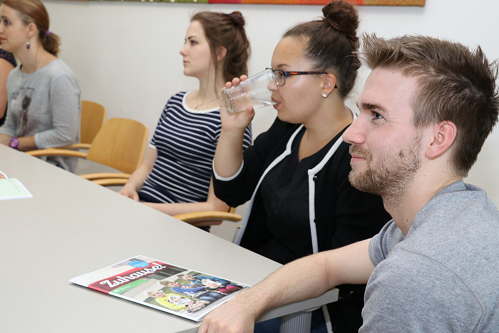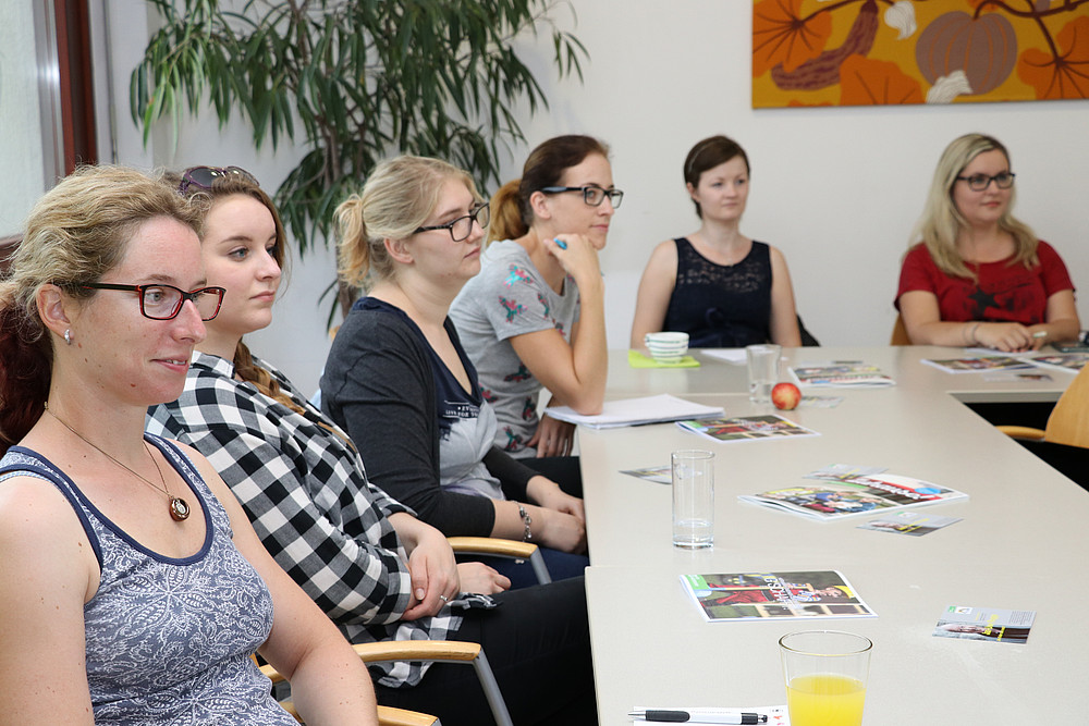 Wie der Alltag für Kinder, Jugendliche und MitarbeiterInnen im Kinderdorf in Stübing verläuft, davon berichtete Franz Derler, pädagogischer Leiter. Die TeilnehmerInnen nutzten die Gelegenheit, um ihre Fragen als potentielle MitarbeiterInnen zu stellen: Wie ist der Einstieg? Wie sind die Dienstzeiten? Welche Qualifikationen sind mitzubringen? Im Vordergrund steht das Ziel, den Kindern und Jugendlichen einen familienähnlichen Alltag zu bieten, so Derler. Eine zentrale Eigenschaft, neben allen geforderten Fähigkeiten und Kompetenzen für BewerberInnen ist auf jeden Fall: "Man muss Kinder mögen!"