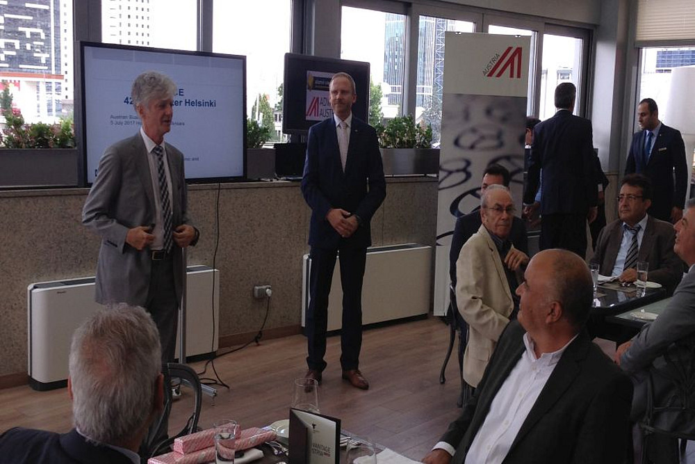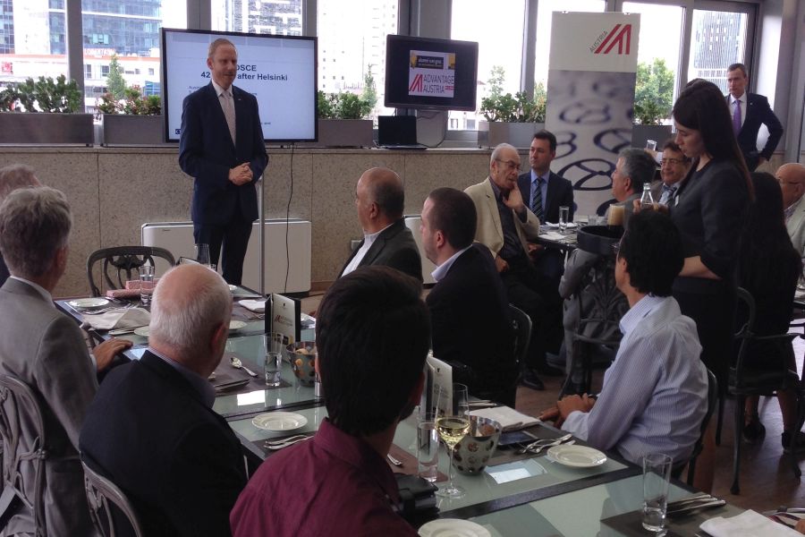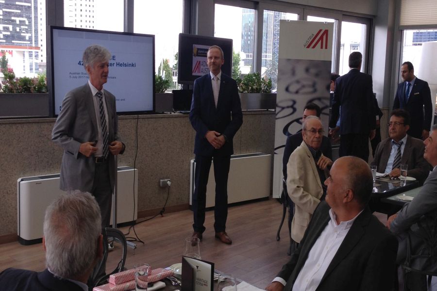 Beim Austrian Business Lunch am 5. Juli 2017 im Hotel JW Marriott Ankara begrüßte Chapterleiter Christian Maier als Gastredner Herrn Dr. Yurdakul Yiğitgüden, ehem. Koordinator in Wirtschafts- und Umweltangelegenheiten der OSZE in Wien.