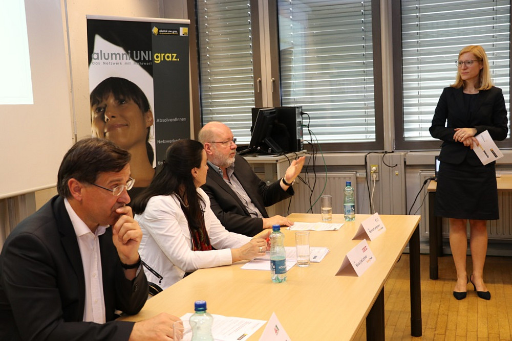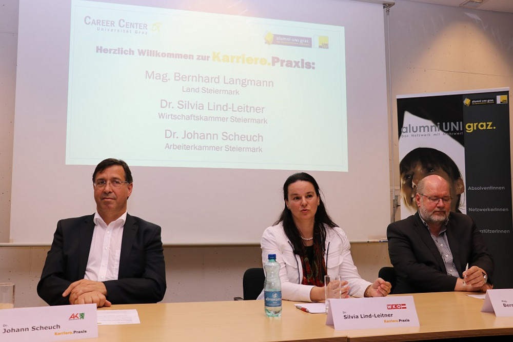 Zudem gab es sehr viele Einblicke und wertvolle Insidertipps rund um das Thema Bewerbung im öffentlichen Dienst. Herr Dr. Johann Scheuch, Leiter der Abteilung Personalwesen der Arbeiterkammer Steiermark, stellte gleich zu Beginn fest: “Ein Akademiker im öffentlichen Dienst sollte Menschen mögen.“ So ist in fast jedem Bereich der AK Steiermark der Kontakt mit Menschen und ihren individuellen Anliegen gefragt.
