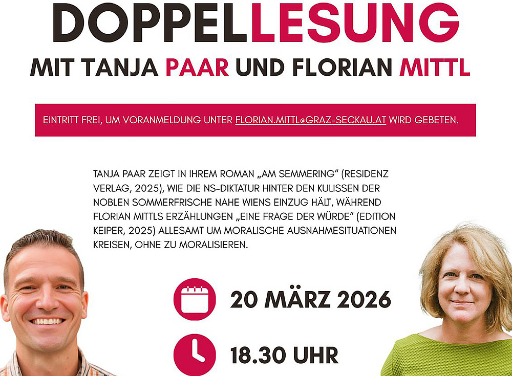 Im März laden Sektionsleiter Florian Mittl und die Journalistin und Schriftstellerin Tanja Paar zu einer Doppellesung.